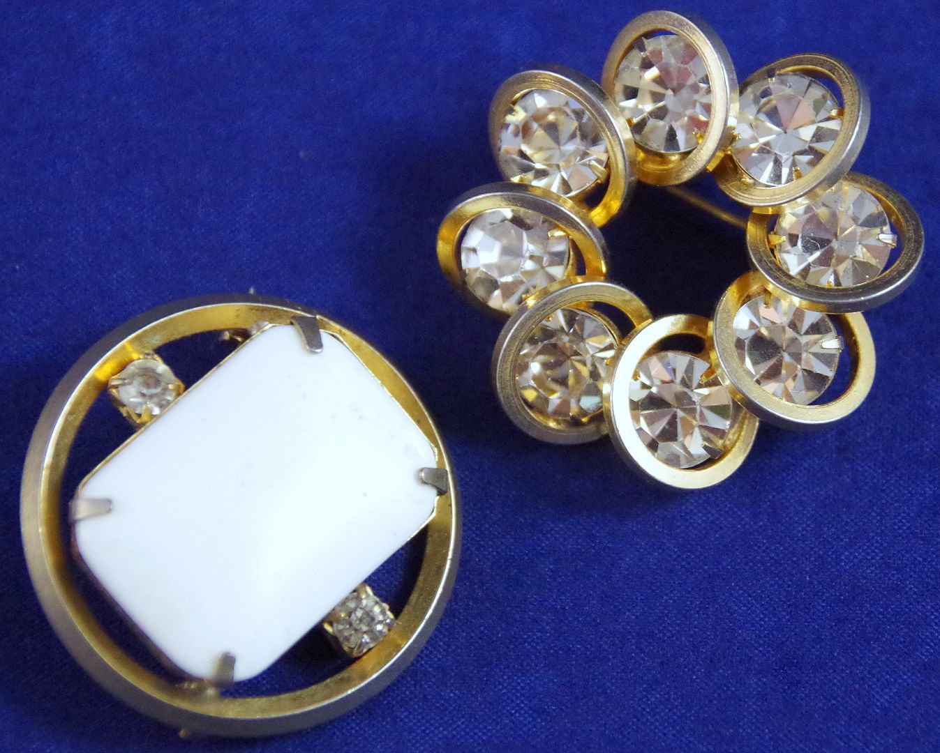 Title (ebay affiliate link): LOT of 2 VTG c1950''s -1 JUDY LEE CLEAR RHINESTONES LUCITE MILK GLASS Brooch Pin