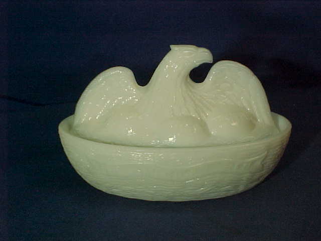 Title (ebay affiliate link): 1898 AMERICAN EAGLE White MILK GLASS Patriotic HEN On NEST Dish SPAN-AM WAR