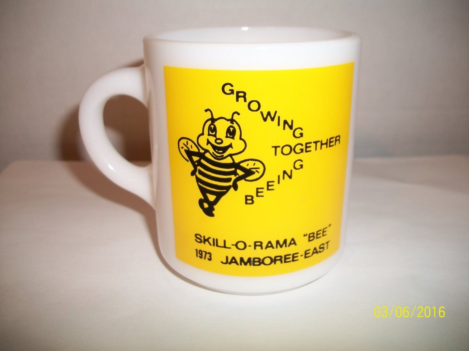 Vintage Milk Glass 1973 Jamboree East Skill-O-Rama Bee Boy Scouts Cub Eagle Scou