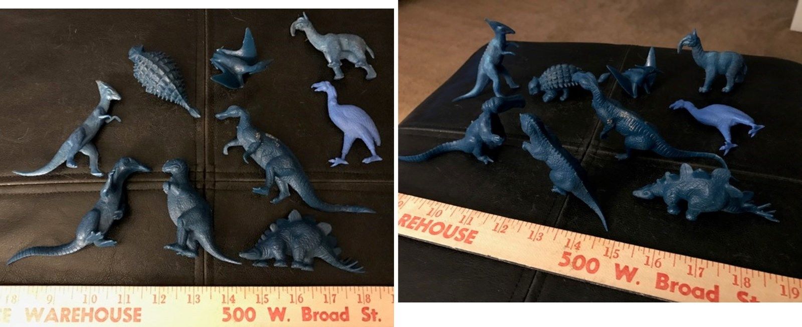 Title (ebay affiliate link): Vintage lot of 9 MARX MPC playset metallic blue and blue dinosaurs VG cond