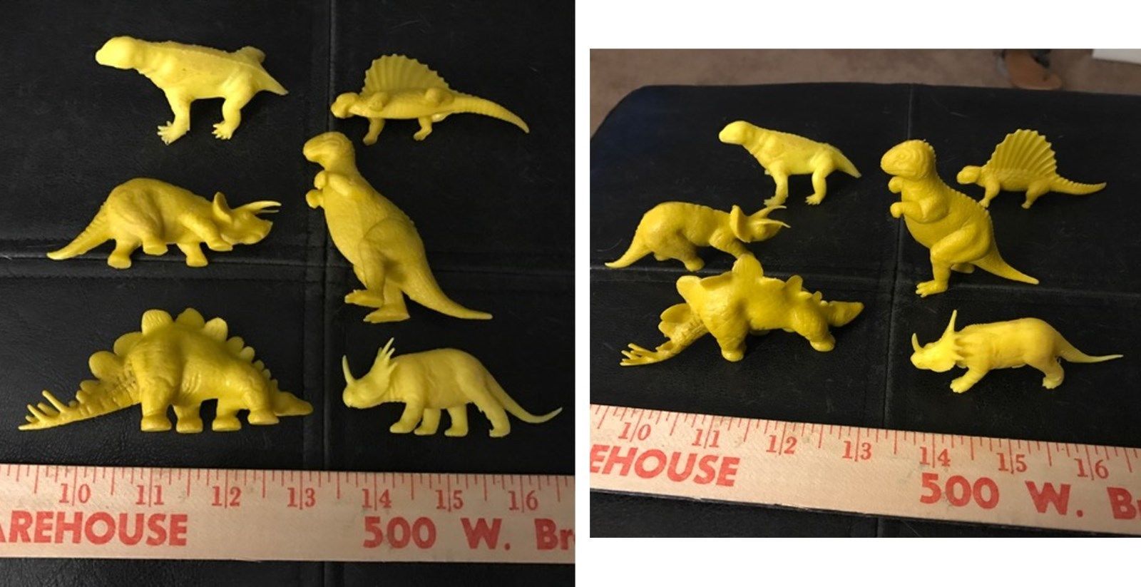 Title (ebay affiliate link): Vintage lot of 6 MARX MPC playset yellow dinosaurs VG cond