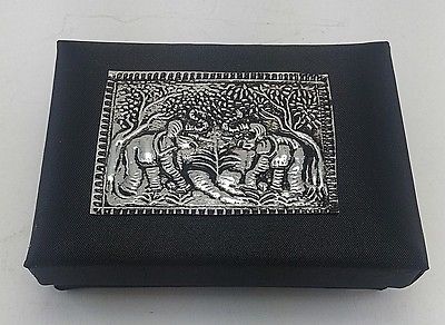 VINTAGE GIFT BOX HANDMADE THAI ELEPHANT,GIFT NAME BUSINESS CARD JEWELRY Black .