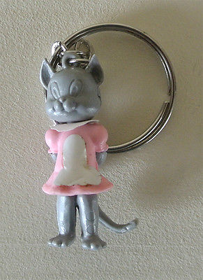 Title (ebay affiliate link): Vintage KEYCHAIN 1960s: very cute KITTY CAT w mouse as toy