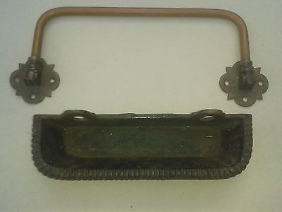 Antique copper and cast iron umbrella stand from end of pine church pew