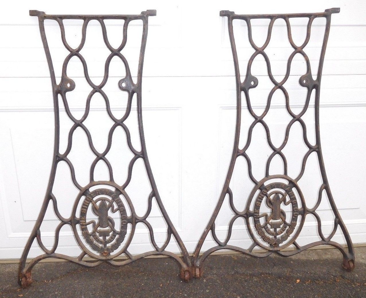Title (ebay affiliate link): ANTIQUE ''SINGER'' MACHINE AGE CAST IRON INDUSTRIAL LEGS END TABLE BASE STEAMPUNK