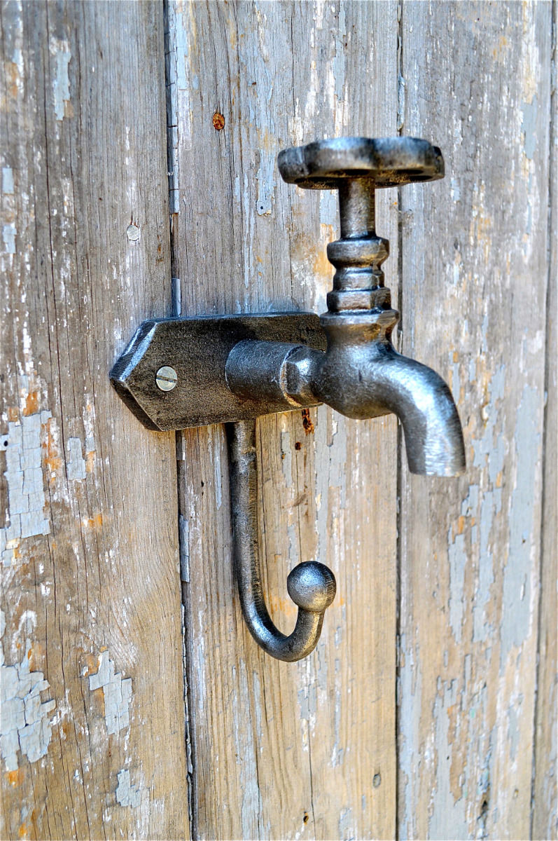 Title (ebay affiliate link): Retro style industrial boiler room galvanised tap coat hook hanger aged relic 1