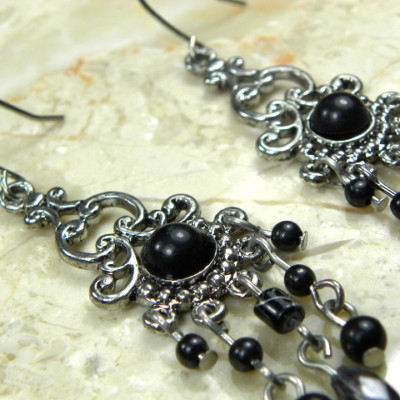 ANTIQUE STYLED BLACK STONE DANGLE EARRINGS 572