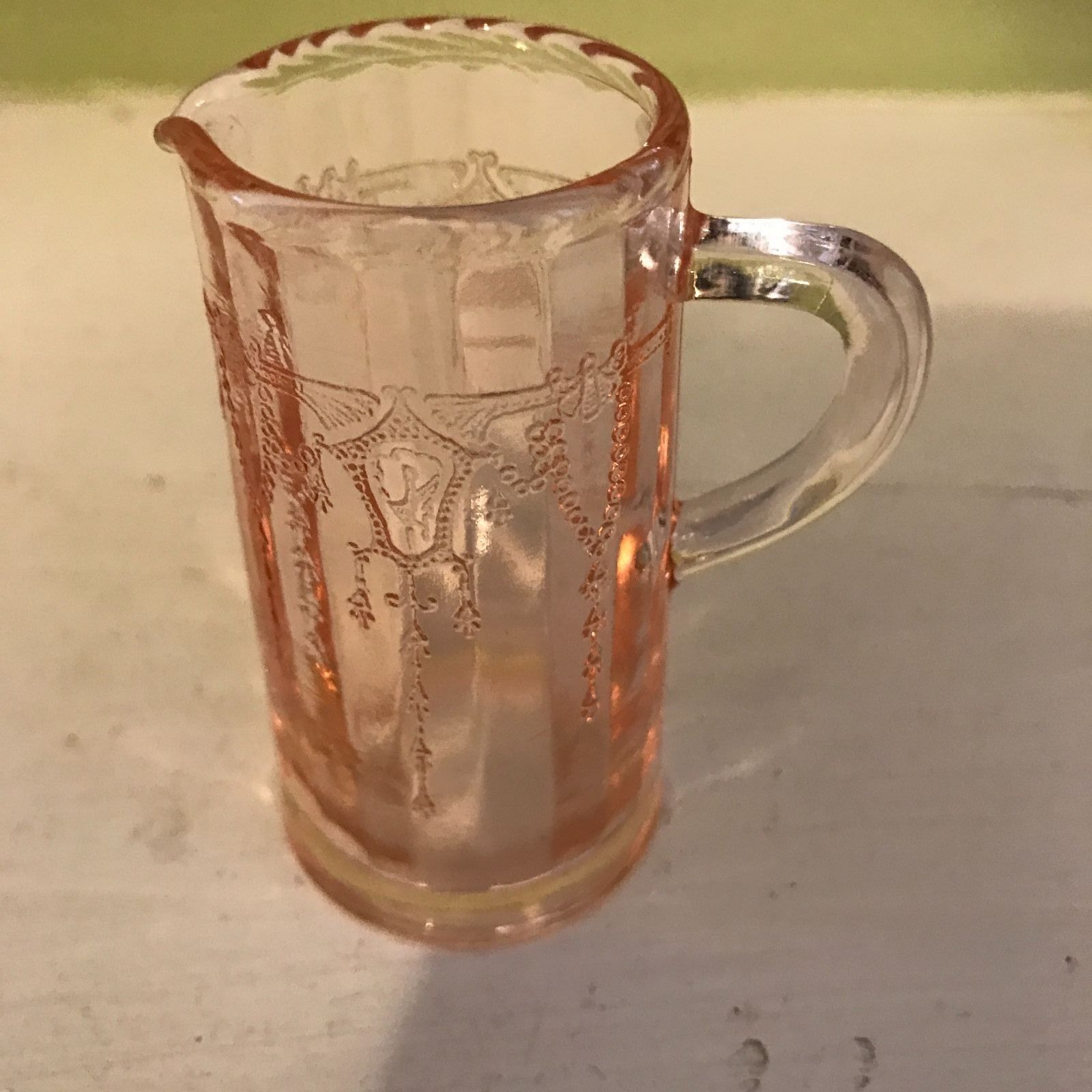 Pink depression glass 3" handled individual creamer toothpick holder