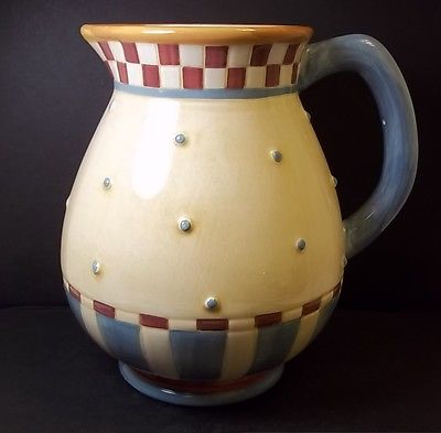 Debbie Mumm large Country Vintage Pitcher striped & checked borders dots 54 oz