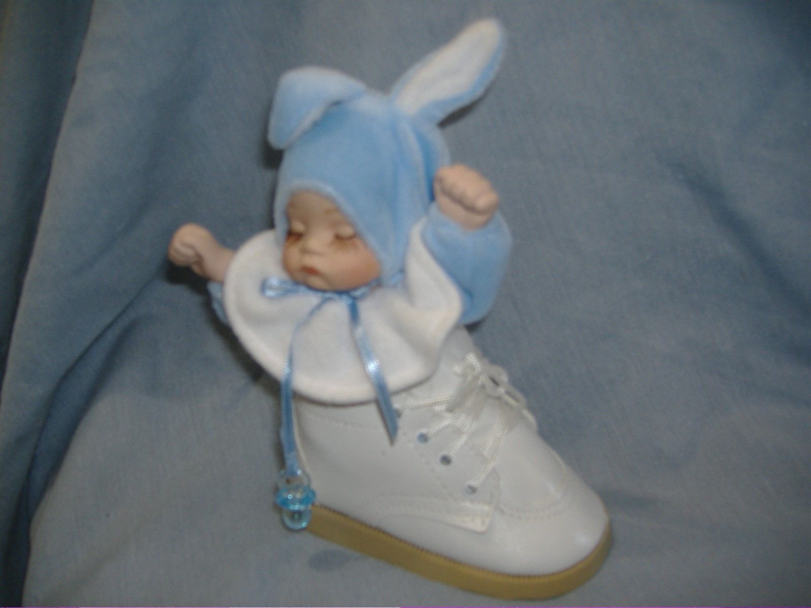 Title (ebay affiliate link): baby dol with blue bunnie ears and in a shoe,l music box