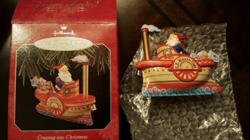 Title (ebay affiliate link): HALLMARK ORNAMENT IN BOX 25 YEARS CRUISING INTO CHRISTMAS, SANTA IN STEAMBOAT