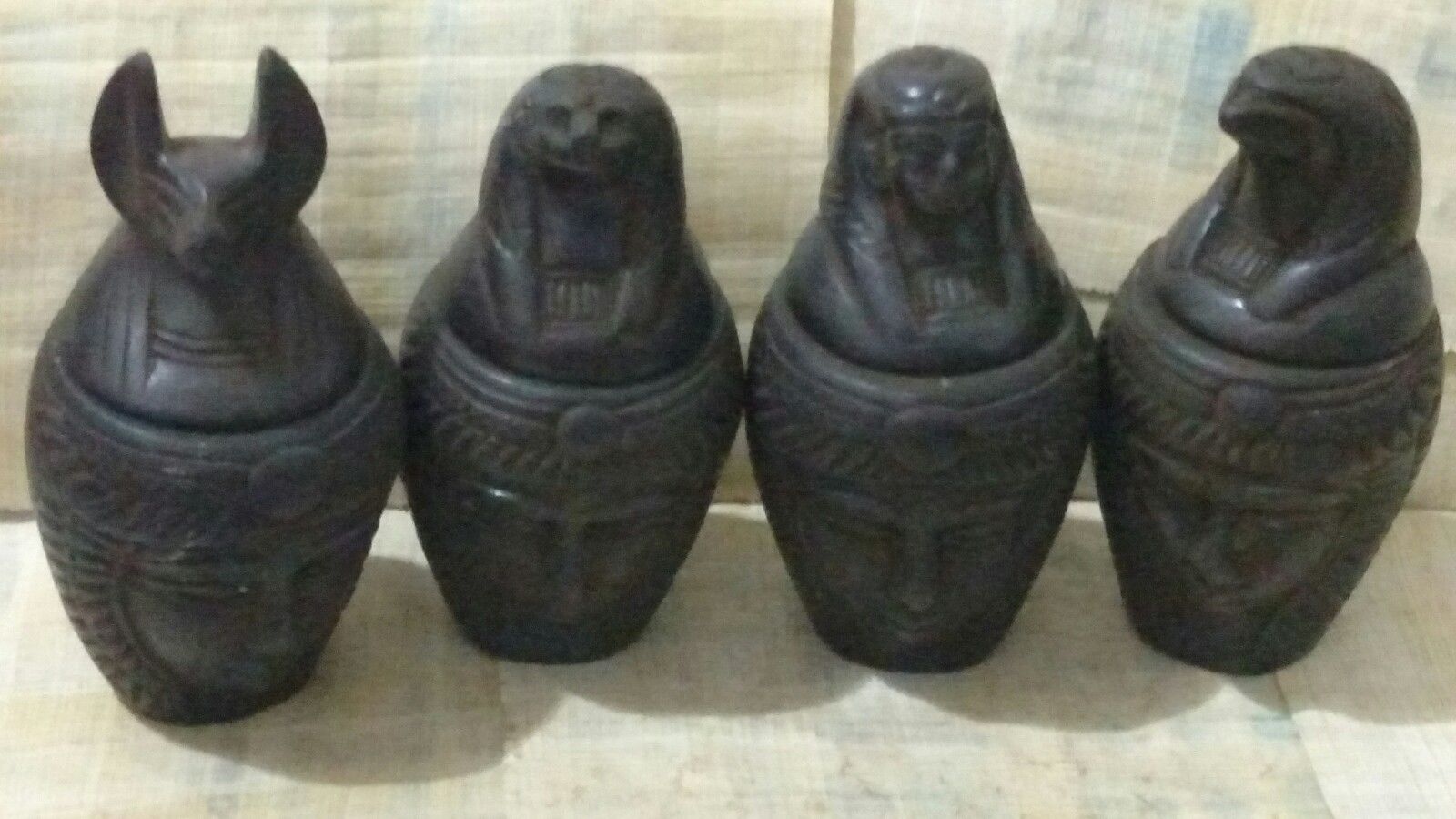 Title (ebay affiliate link): Lot of 4 Egyptian Canopic Jars, Anubis, HORUS, Isis & tefnut, see description