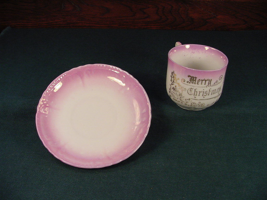 Circa 1910 Antique Santa Claus Merry Christmas Porcelain Cup and Saucer