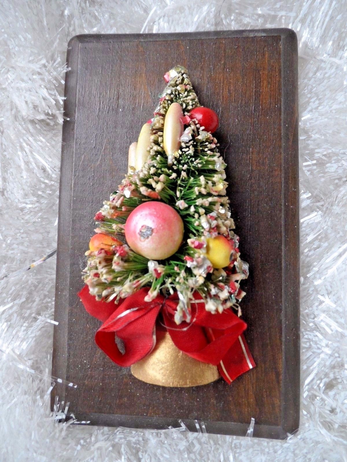 Title (ebay affiliate link): Vintage Handmade Victorian Wood Plaque w/Bottle Brush Tree 3-1/2" x 5-1/2"