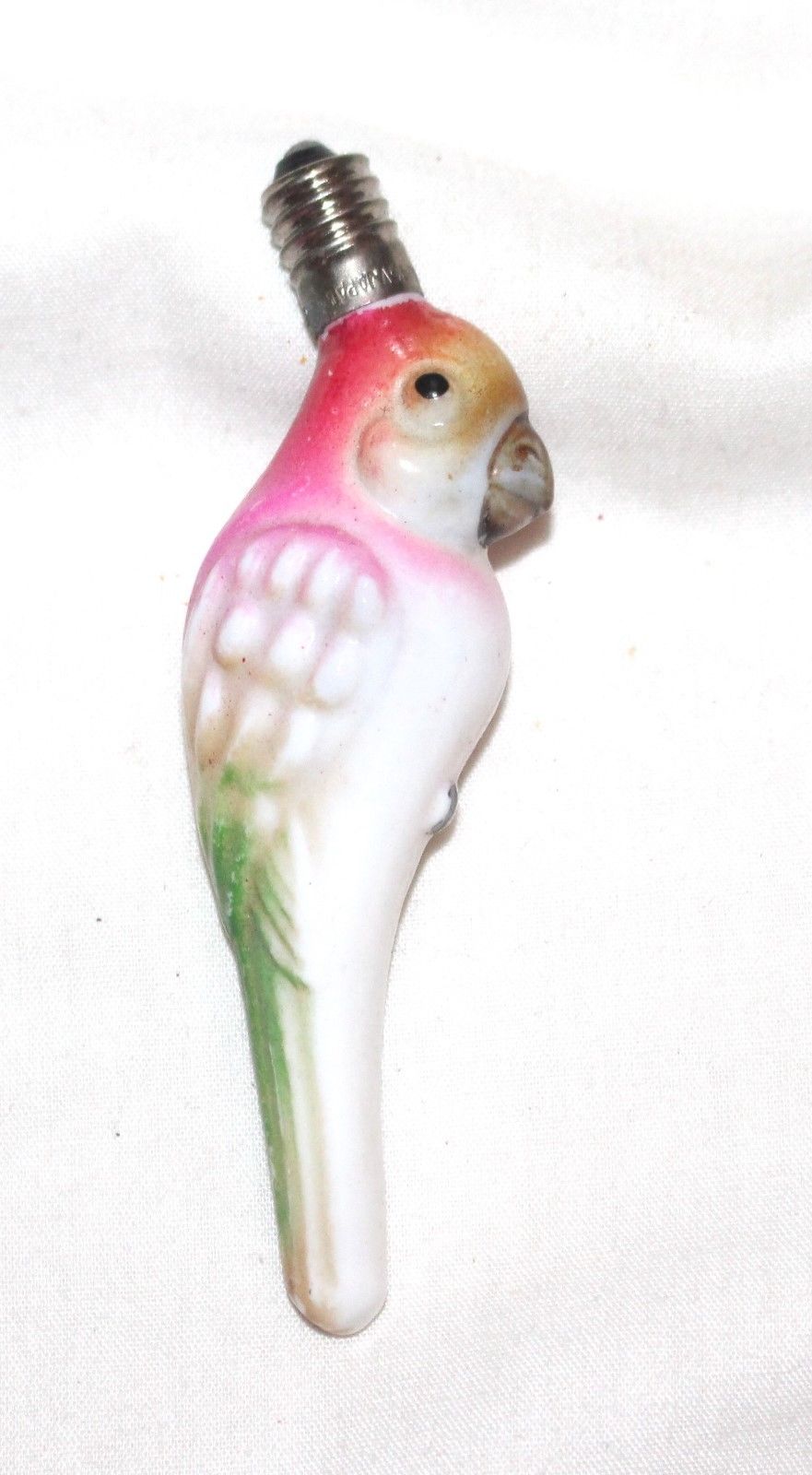 Title (ebay affiliate link): Colorful exotic Parrot. C-6 Miniature Base Christmas Milk glass. Works.