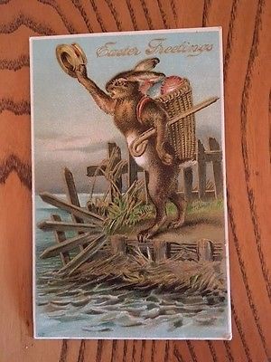 Antique VTG Easter Postcard Humanized Rabbit 1910 VERY GOOD CONDITION