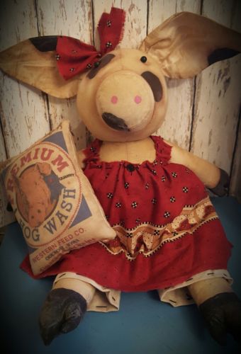 Title (ebay affiliate link): Primitive Pig Doll with Feed Sack Ornie ~ Feedsack ~ Farm ~ Piggy ~