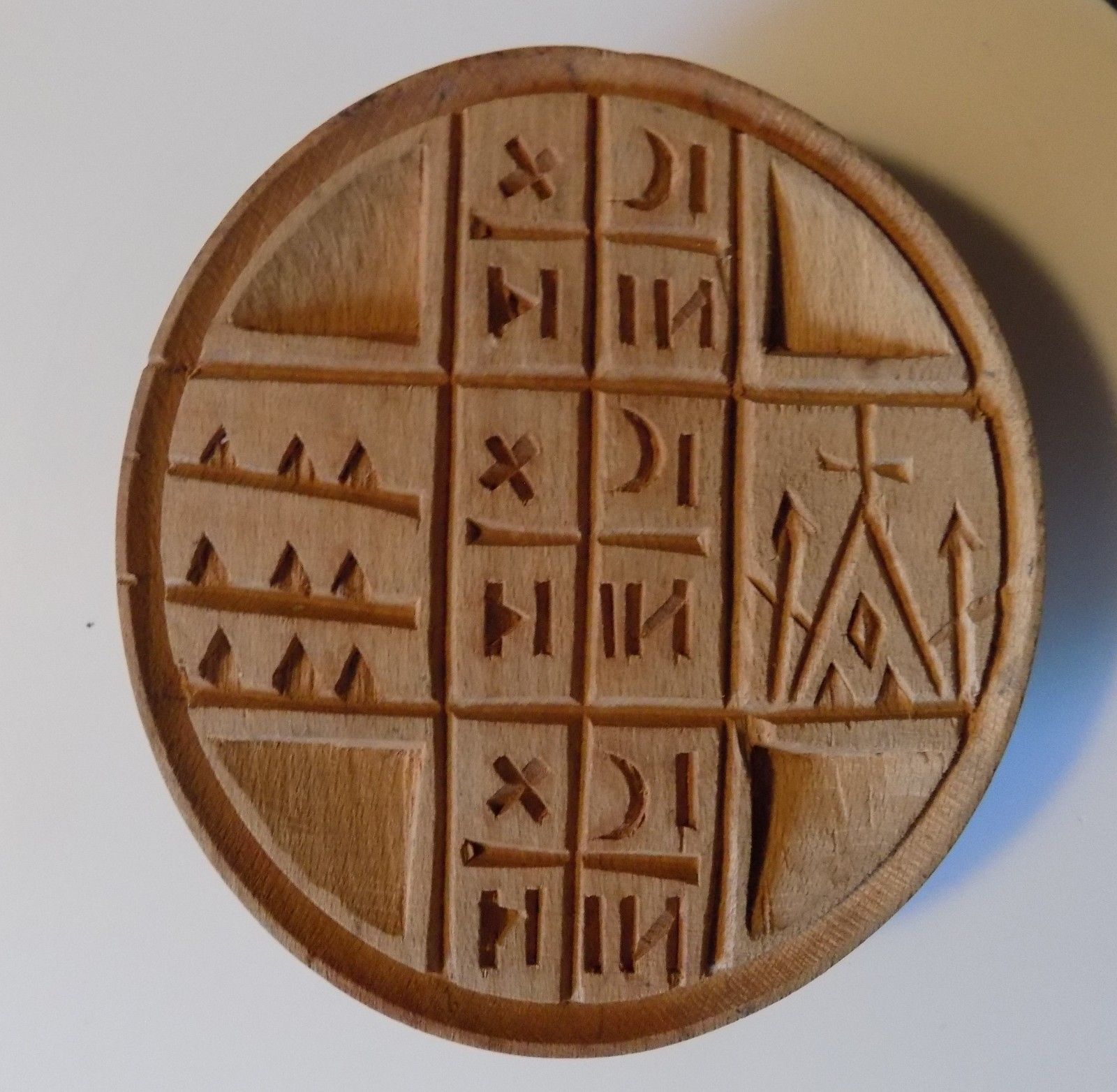 Antique/Vtg Unusual Christian Wooden Wood Primitive Butter Cookie Mold Press
