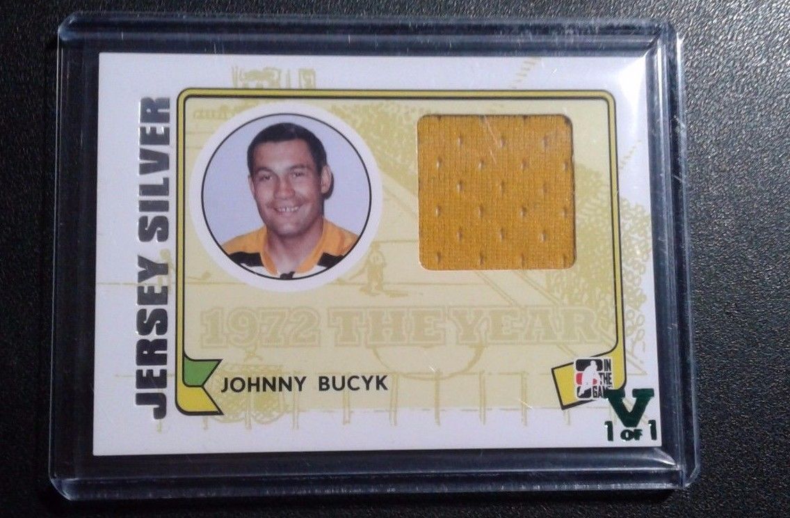 Title (ebay affiliate link): Johnny Bucyk 2016 The vault 1/1 1972 The year in hockey Jsy card