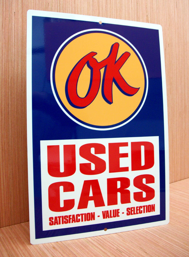 OK USED CARS DEALERSHIP SIGN CHEVROLET CORVETTE CAMARO NOVA CHEVELLE