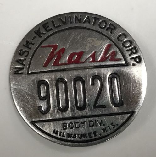 Title (ebay affiliate link): NASH KELVINATOR CORP MOTOR COMPANY EMPLOYEE WORK BADGE 90020 PIN MILWAUKEE RARE