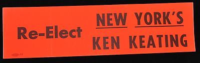 Vintage 1964 New York US Senator Kenneth Keating Political Bumper Sticker Reelec