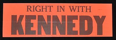 Vintage 1968 US Senator Robert Kennedy Political Bumper Sticker Right In With