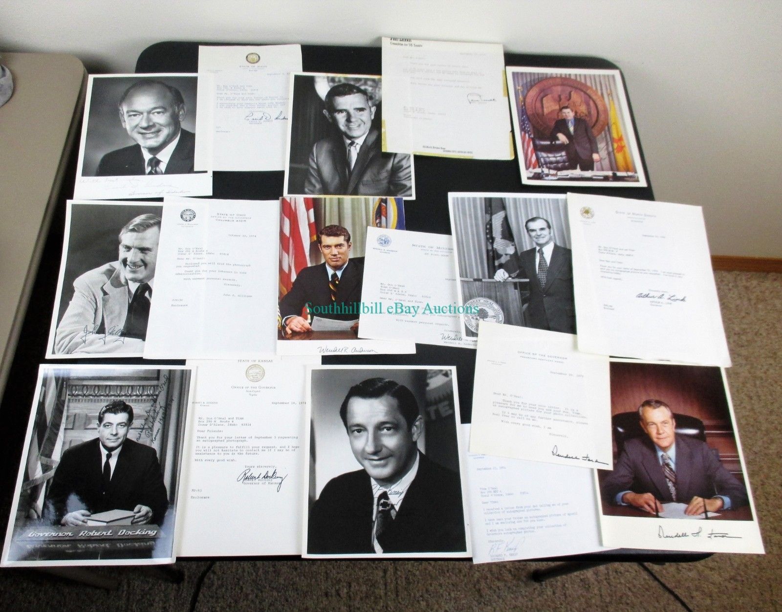 Title (ebay affiliate link): (9) AUTOGRAPHED PICTURES +LETTERS 1970s GOVERNORS STATES KS MN ND KY SD OH ID NM