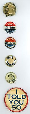 6 Vintage 1930s President Franklin Roosevelt Political Told You Pinback Buttons