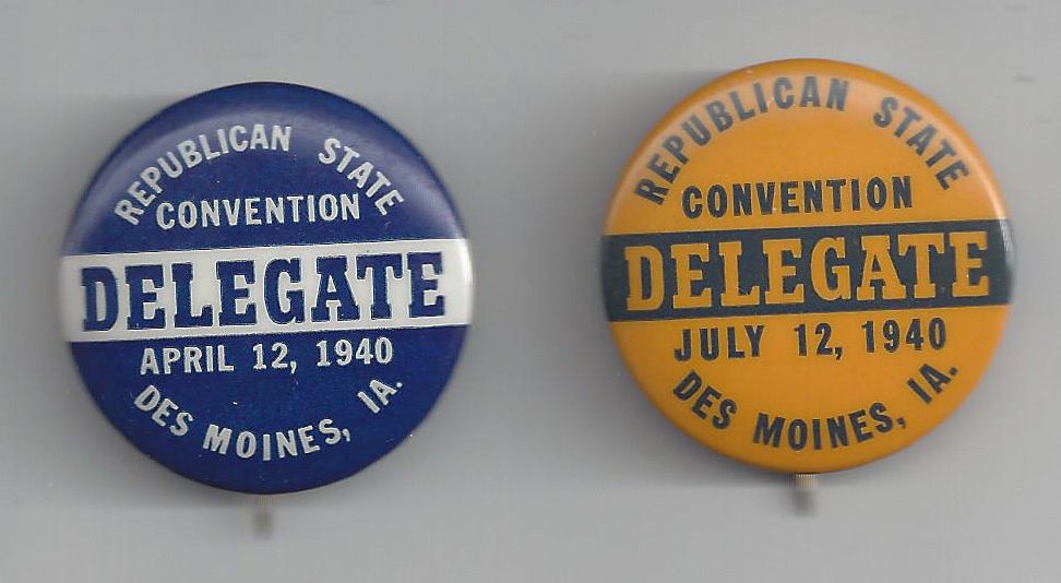 Title (ebay affiliate link): 1940 WILLKIE era PAIR OF DELEGATE BUTTONS DES MOINES, IOWA STATE GOP CONVENTION