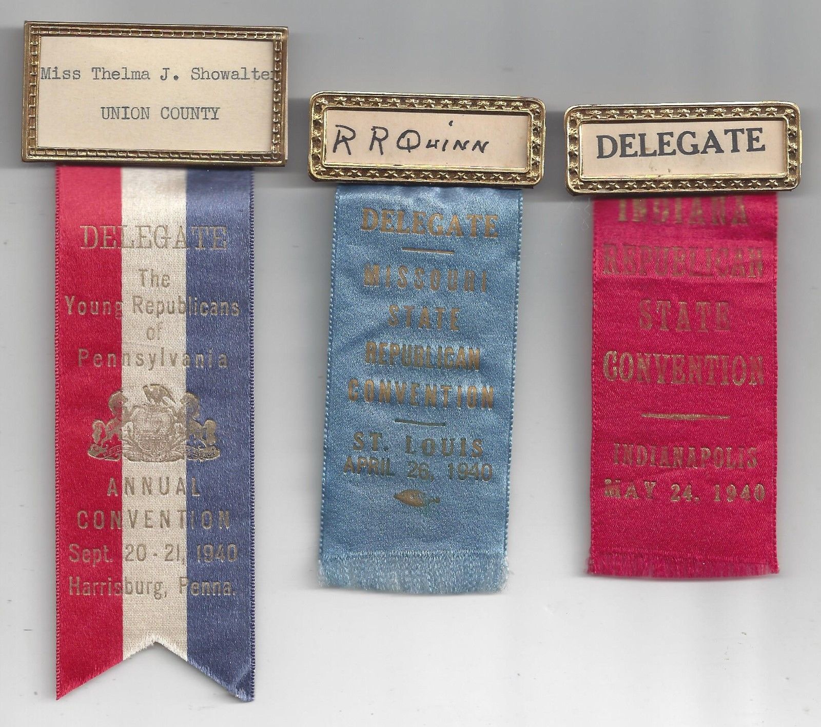 1940 WILLKIE era PENNSYLVANIA, MISSOURI & INDIANA STATE GOP CONVENTION RIBBONS