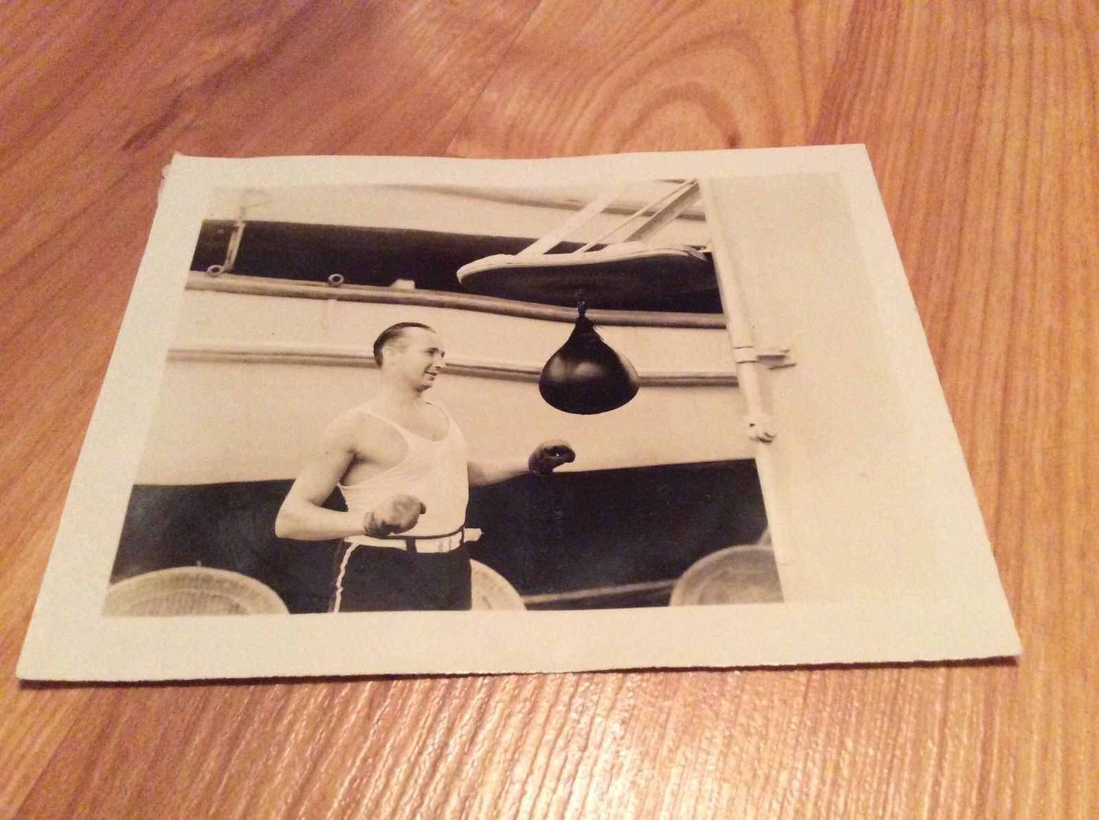1933 photo Washington Rep M A Zioncheck w/punching bag on USS Henderson 4x5