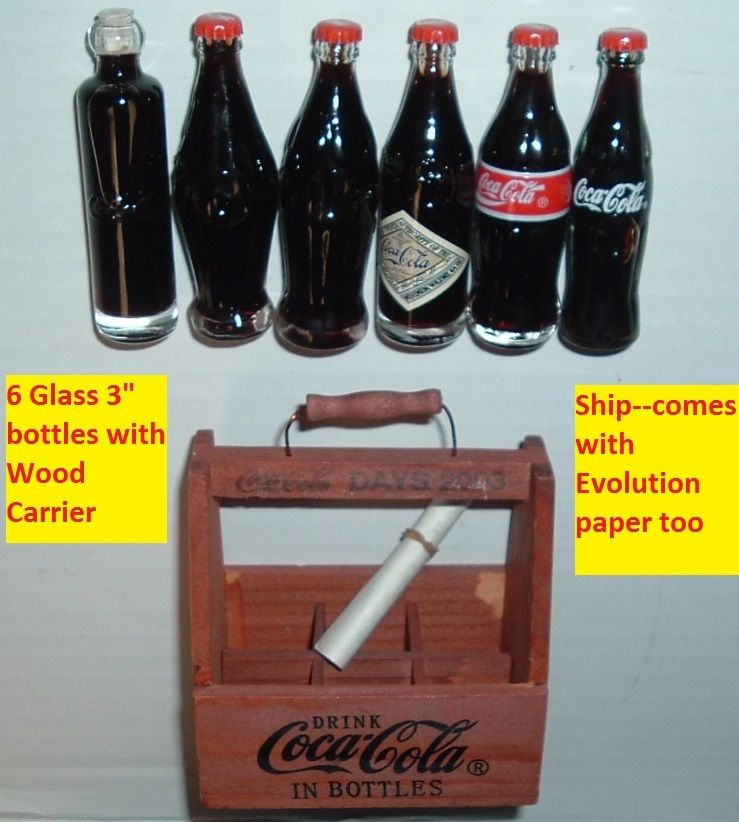 Title (ebay affiliate link): Coca Cola Miniature Coke Evolution Miniature Pop Bottles with Wood Carrier MINT!