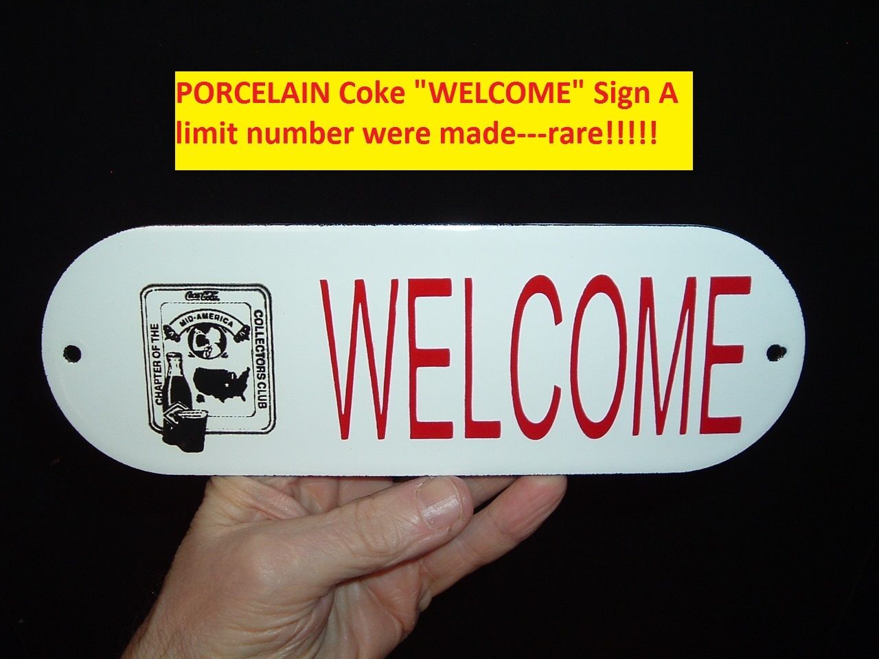 Unusual Coca Cola Soda Pop COKE PORCELAIN "WELCOME" Sign MINT Free ship