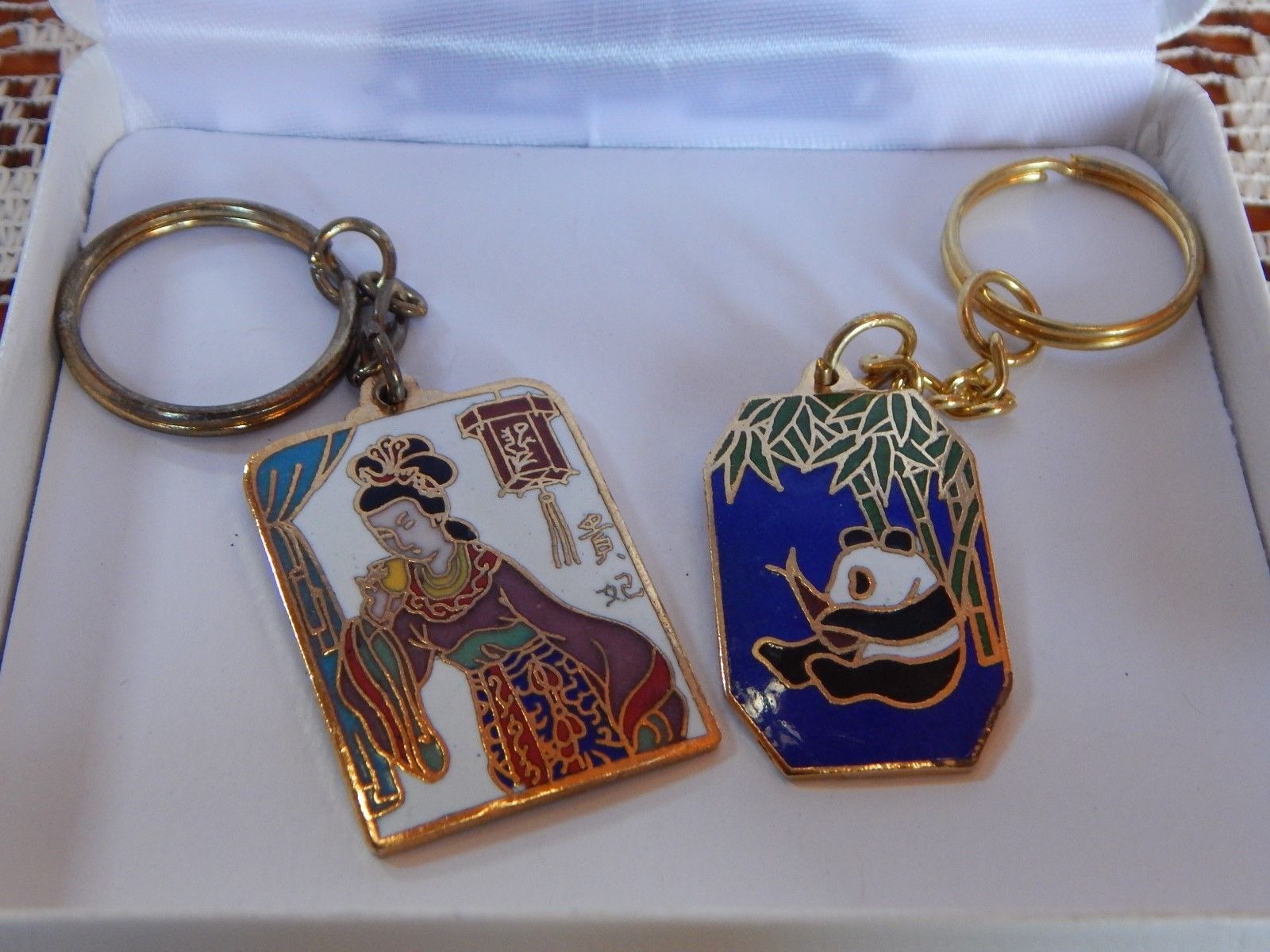 VINTAGE CLOISONNE ORIENTAL KEY CHAINS