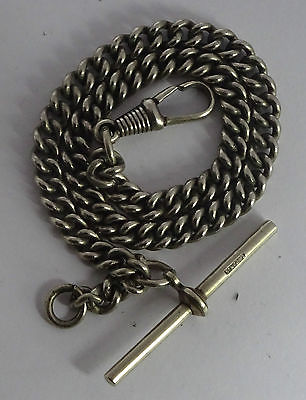 Antique silver plated pocket watch albert chain with swivel T bar & clip