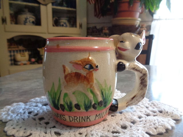 Title (ebay affiliate link): Vintage Hand Decorated "Always Drink Milk" Mug/Cup - Handle "Deer"