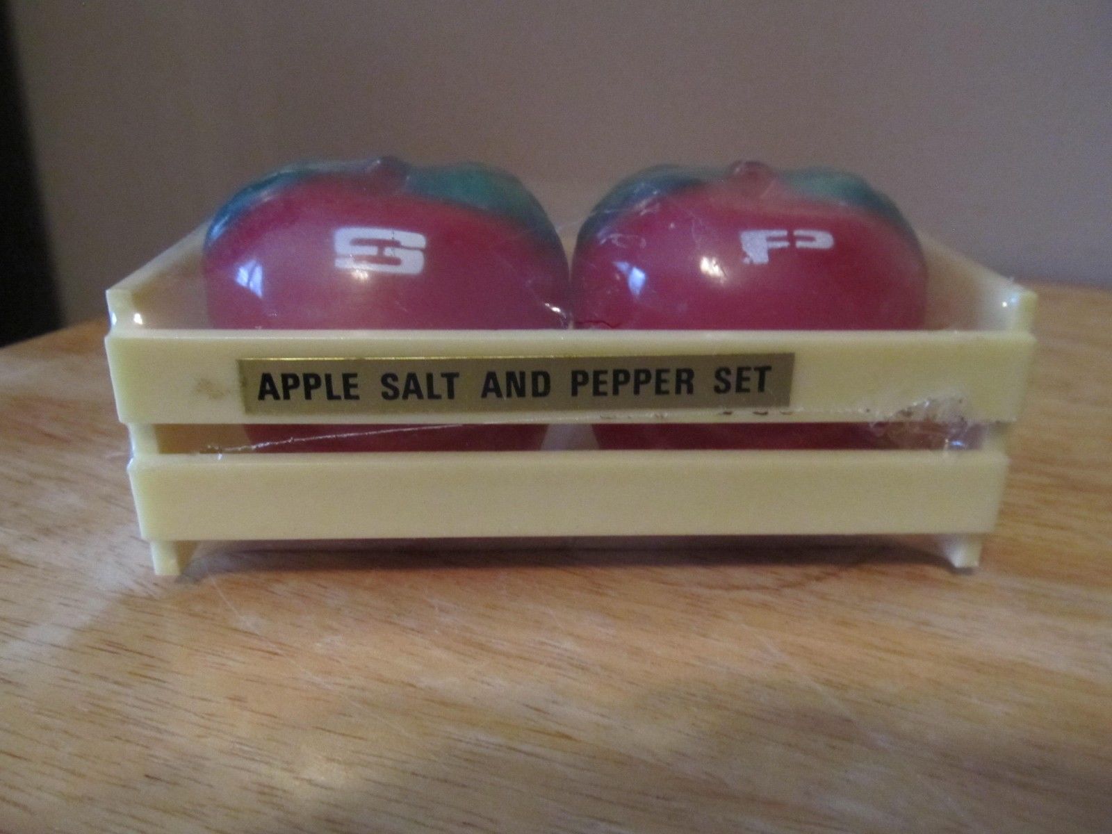 Title (ebay affiliate link): Vintage Plastic Red Apples Salt and Pepper Shaker Set~w/Plastic Crate~Brand New!