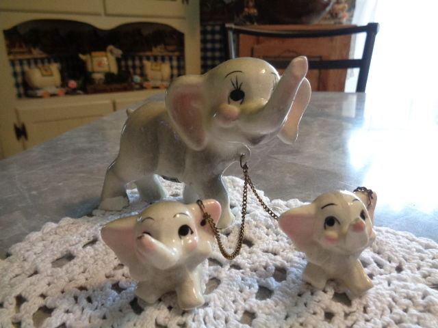 Title (ebay affiliate link): VINTAGE BRINNCO ELEPHANTS ON CHAIN - JAPAN - MAMA AND 2 BABIES