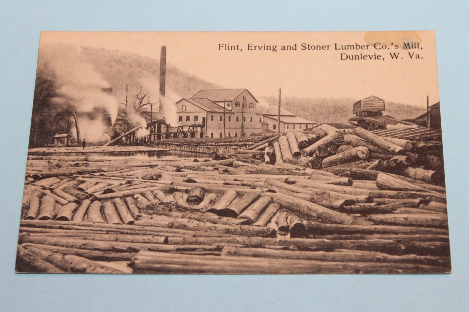 Title (ebay affiliate link): VINTAGE FLINT ERVING AND STONER LUMBER CO MILL DUNLEVIE WEST VIRGINIA POSTCARD