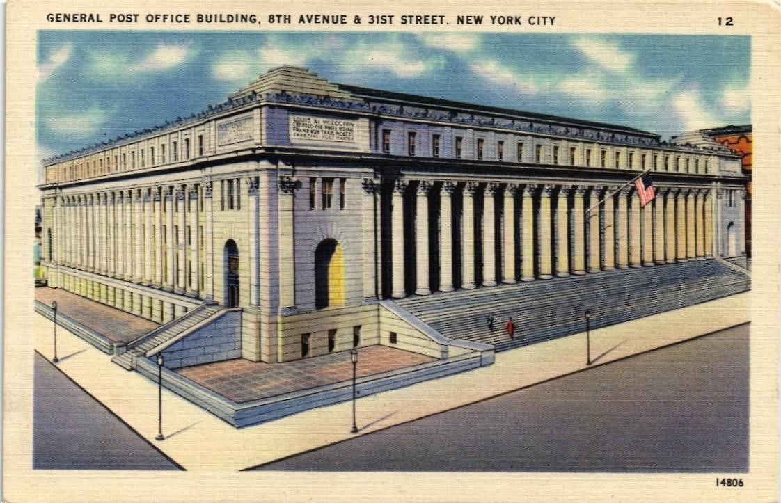 Title (ebay affiliate link): DR JIM STAMPS US GENERAL POST OFFICE NEW YORK CITY LINEN POSTCARD COLOURPICTURE