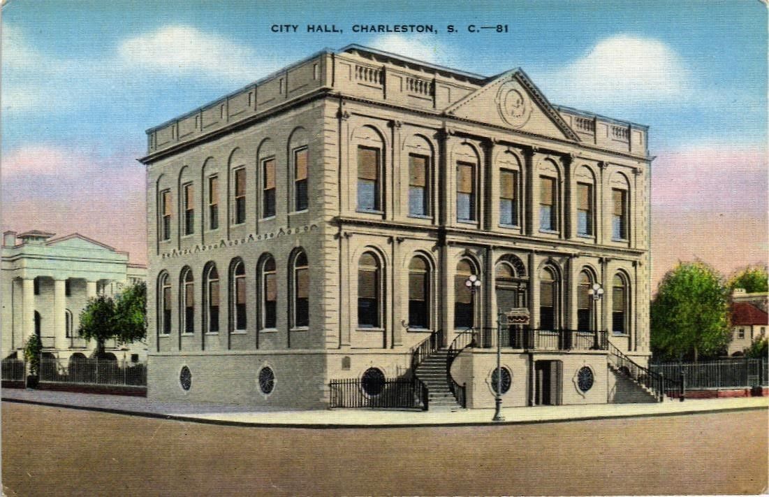 DR JIM STAMPS US CITY HALL CHARLESTON SOUTH CAROLINA POSTCARD LINEN KROPP