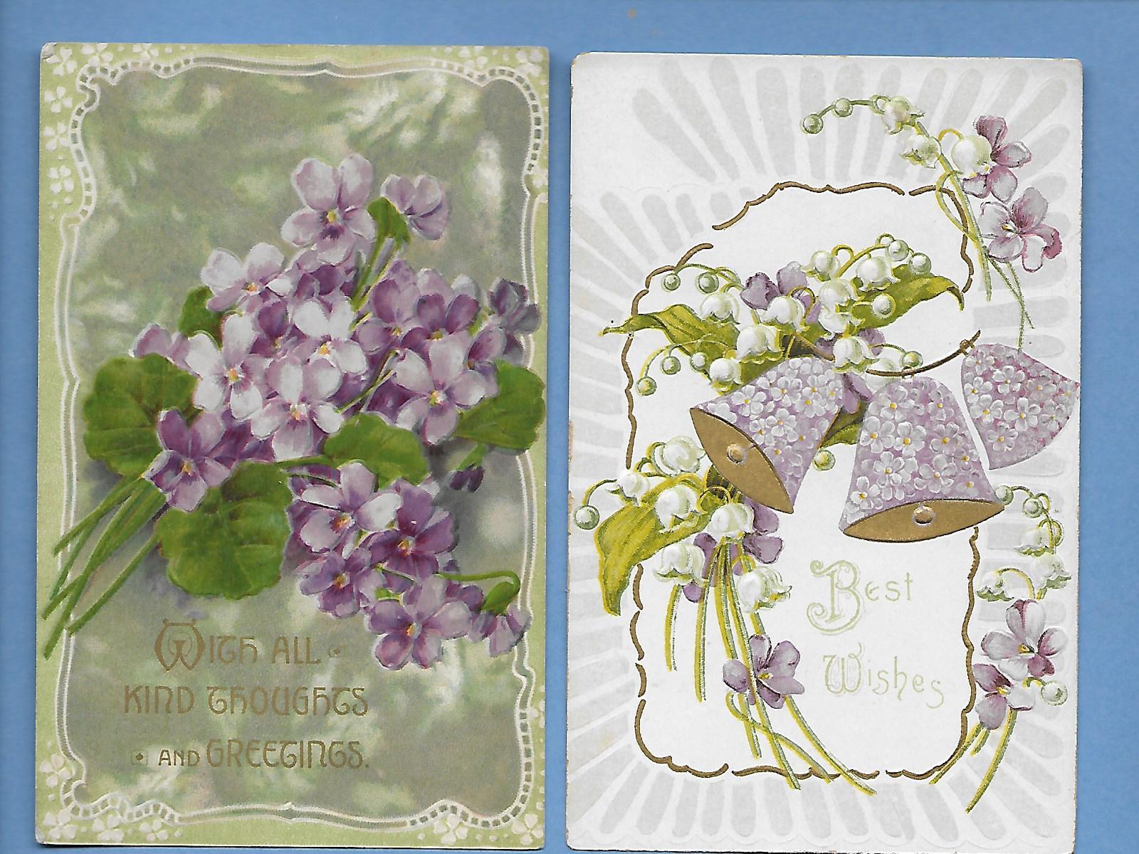 Lot of 14 Floral Postcards - Pretty Violets - Bouquets - Bells