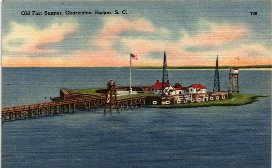 DR JIM STAMPS US FORT SUMTER CHARLESTON HARBOR SOUTH CAROLINA LINEN POSTCARD