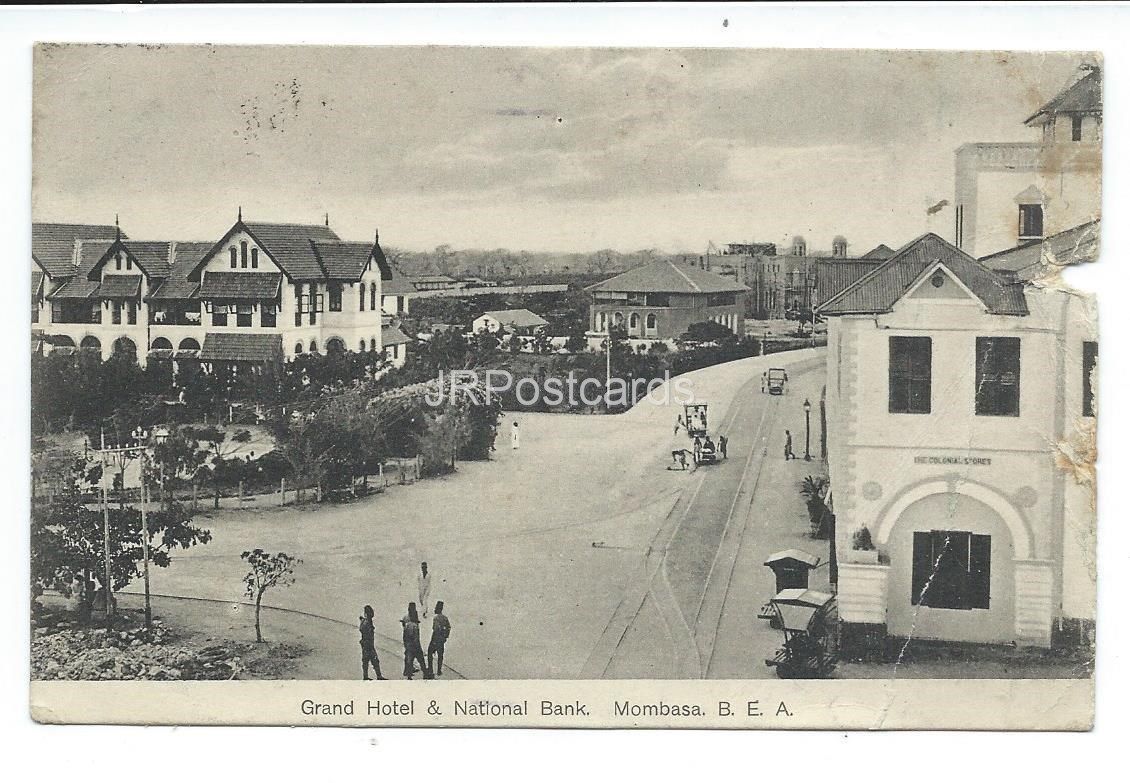 Title (ebay affiliate link): Vintage postcard ~ Grand Hotel and National Bank ~ Mombasa ~ B.E.A.