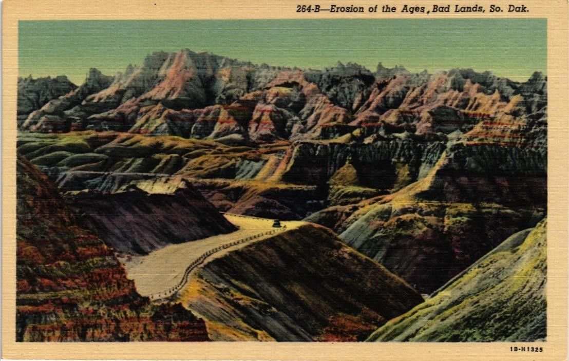 Title (ebay affiliate link): DR JIM STAMPS US EROSION OF AGES BAD LANDS SOUTH DAKOTA POSTCARD LINEN