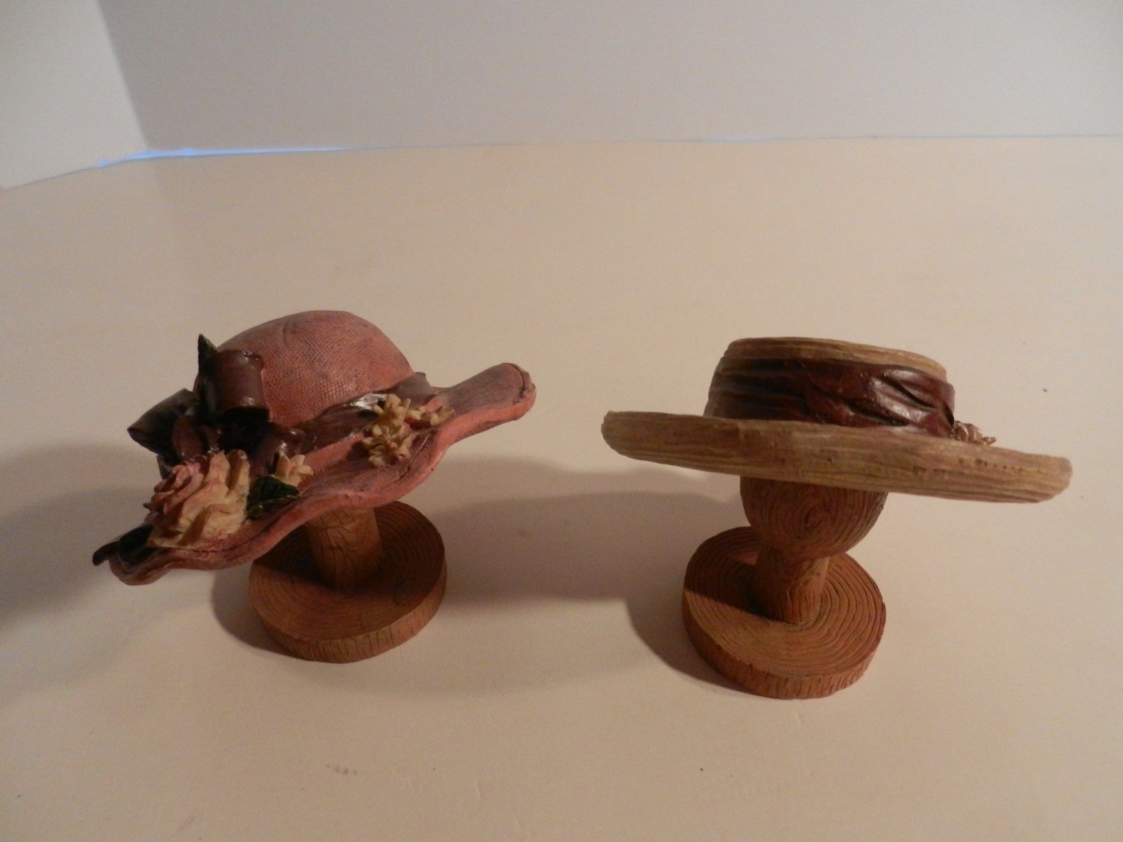 Lot of 2 Mini Miniature Resin Hats on Stands