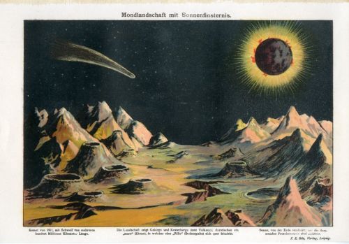 Title (ebay affiliate link): c1900 MOON PLANET LANDSCAPE TOTAL SOLAR ECLIPSE COMET AntiqLithograph Print Bilz
