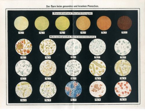 Title (ebay affiliate link): c1900 URINE UNDER MICROSCOPE HEALTHY and SICK PEOPLE Antique Litho Print Bilz