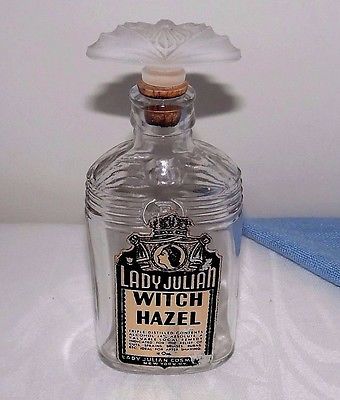 Title (ebay affiliate link): Antique WITCH HAZEL BOTTLE Lady Julian Cosmetics GLASS & CORK STOPPER Full Label